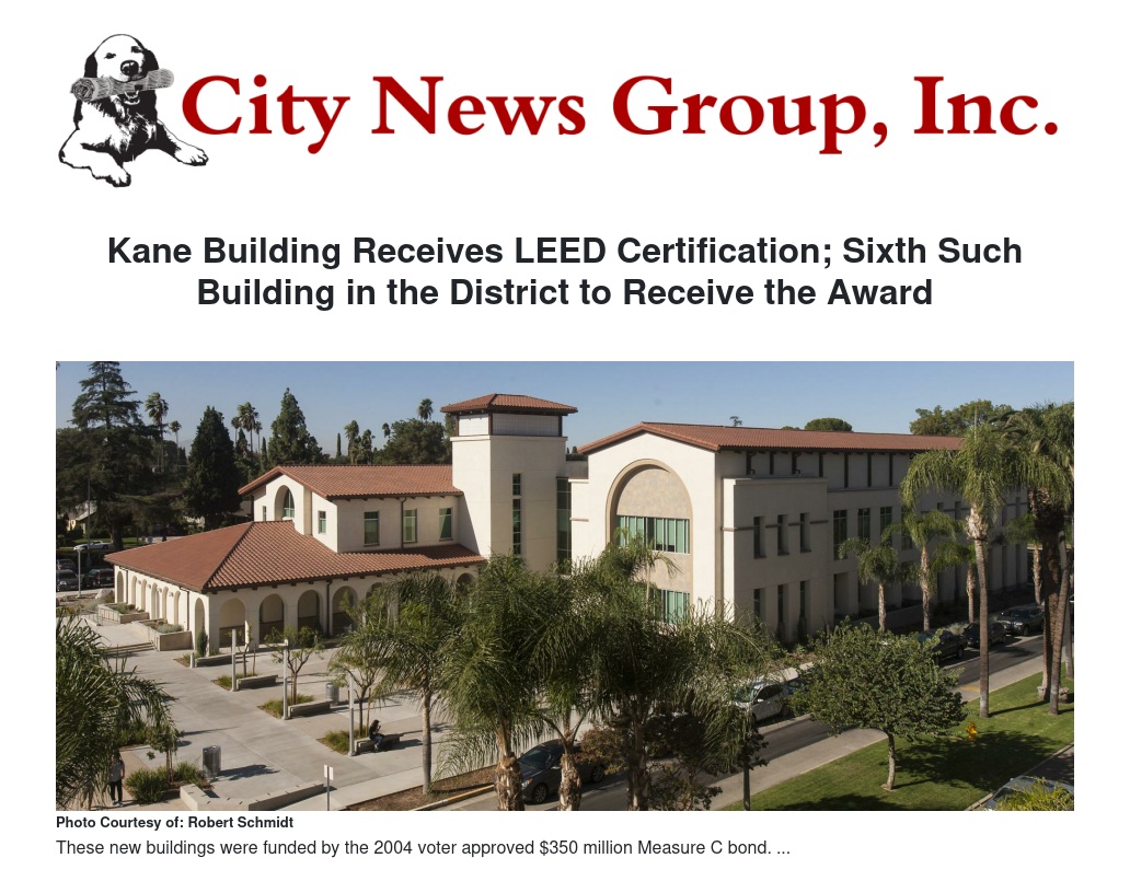 It was announced last week that the Dr. Charles A. Kane Student Services and Administration Building became the sixth building for Riverside Community College District to receive LEED certification.
