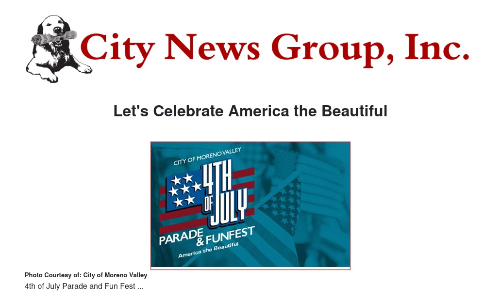 Moreno Valley's Fourth of July Parade & FunFest is right around the corner! Hey, MoVal! Join us at 9:30 a.m. to watch our Fourth of July parade down Frederick Street, featuring all your favorite community members, local businesses, and more. And later that day, don't forget to stop by our signature FunFest at the Civic Center Amphitheater, the B-E-S-T Fourth of July event in the Inland Empire! The FunFest will run from 3 p.m. to 9:30 p.m. and feature live bands, delicious food vendors, a beer garden, a youth fun zone, and one of the most exciting fireworks shows in the region! Celebrate Independence Day the MoVal Way! Visit moval.org/fourth for more information. |