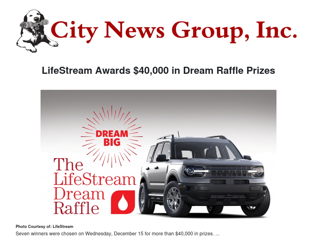 Seven lucky winners were awarded more than $40,000 in prizes on Wednesday when LifeStream Blood Bank held the drawing for its 2nd annual Dream Raffle, presented by Blanke Schein Wealth Management.