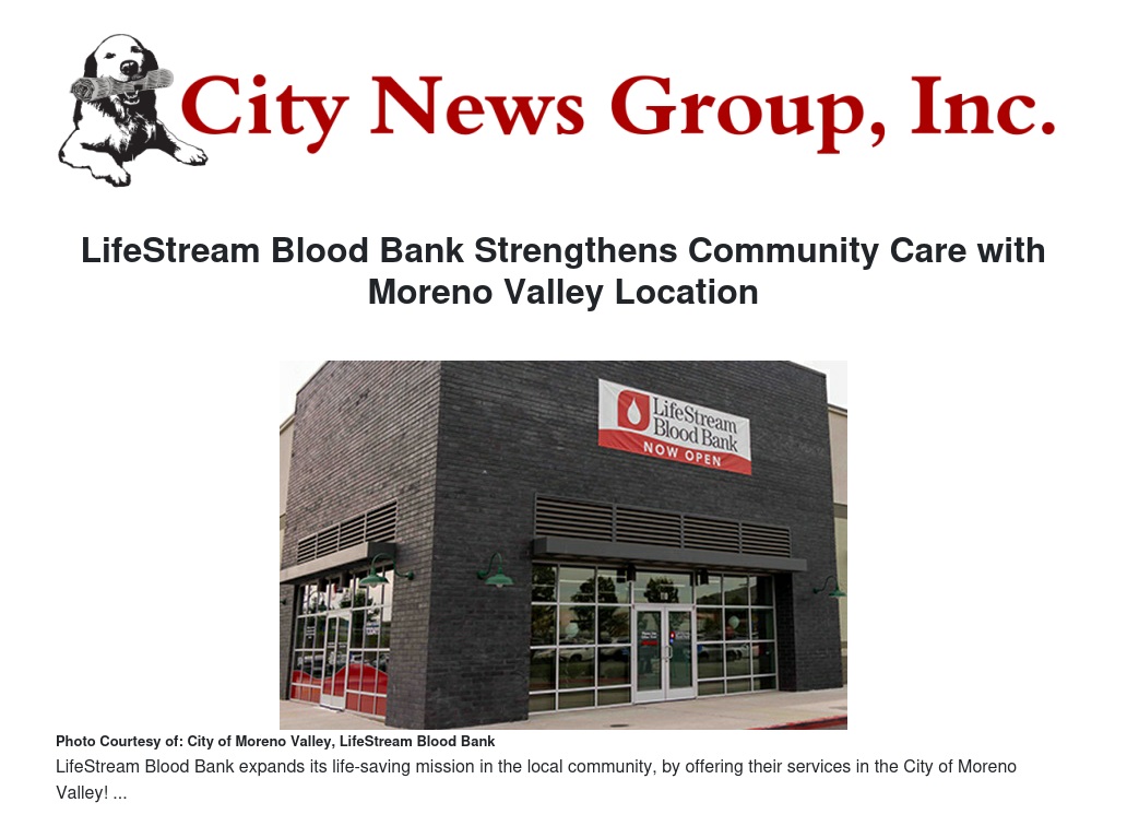 LifeStream Blood Bank Strengthens Community Care with Moreno Valley Location by William Cortez - City News Group, Inc.