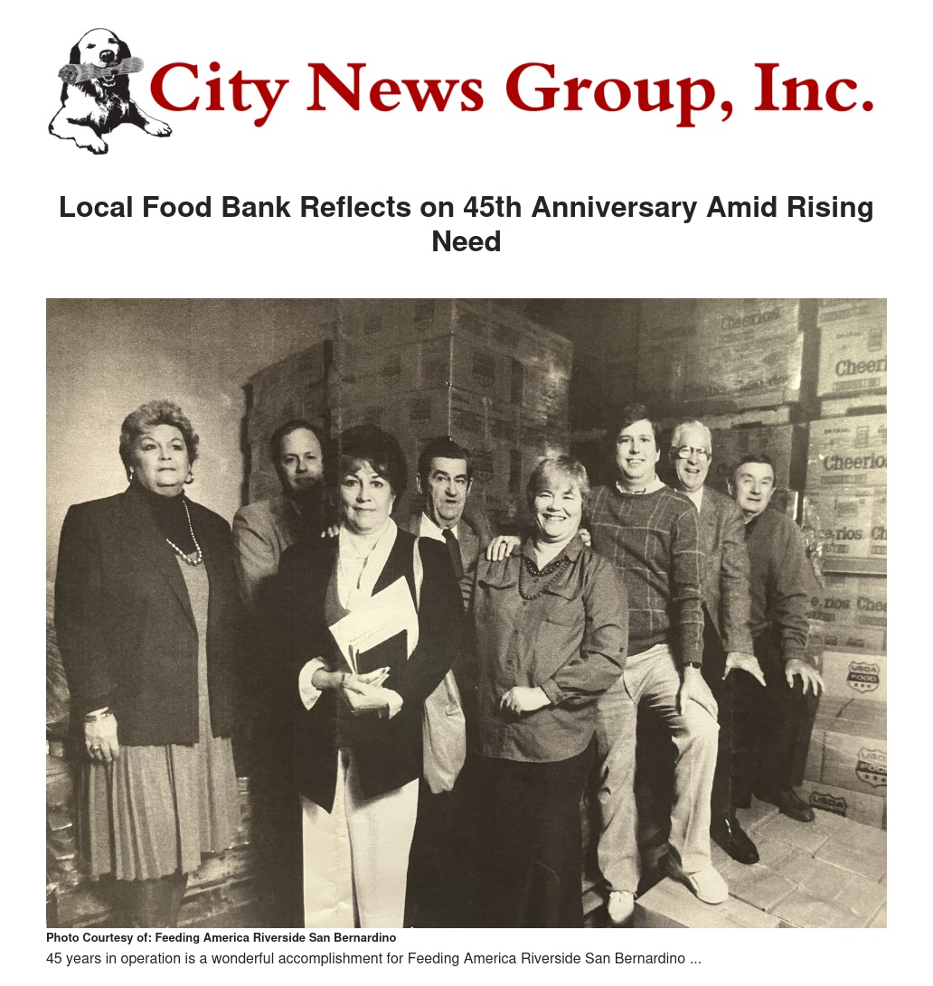 Feeding America Riverside | San Bernardino (FARSB) reflects as it concludes the food bank’s 45th year of operating. With rising needs in the Inland Empire (IE), the food bank highlights the vital work it does within the community while bringing attention to the ways the region must focus on addressing major issues within the food system to ensure equitable access to all community members.