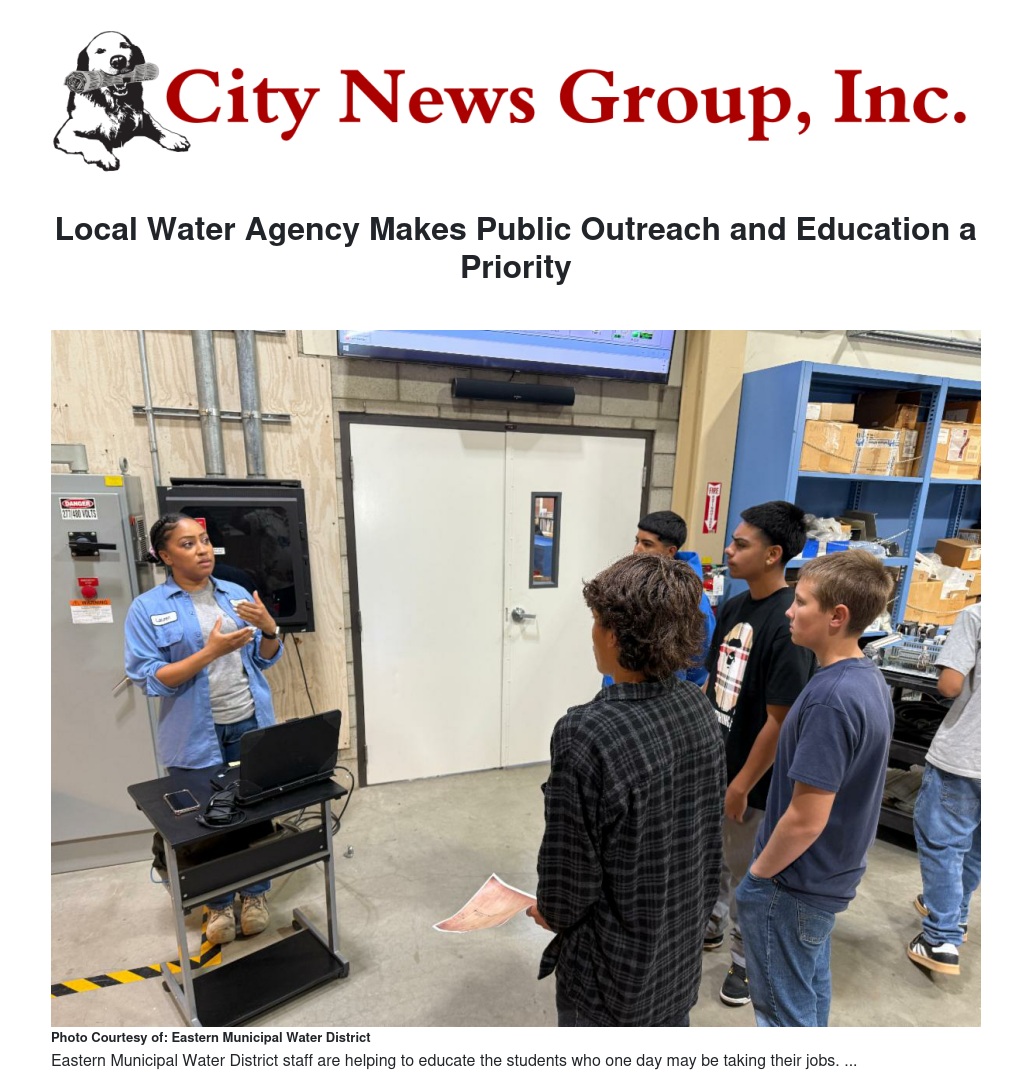 For decades, EMWD has partnered with area school districts to promote water education programs, with the emphasis on establishing positive water use habits. In 2024-25, the program changed its focus to proactively address a looming problem all water agencies are facing: finding their future workforce.