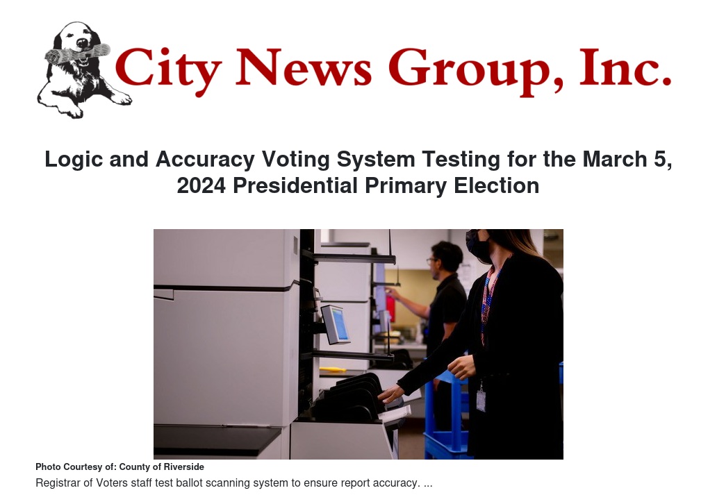 Logic and Accuracy Voting System Testing for the March 5, 2024 Presidential Primary Election by County of Riverside - City News Group, Inc.