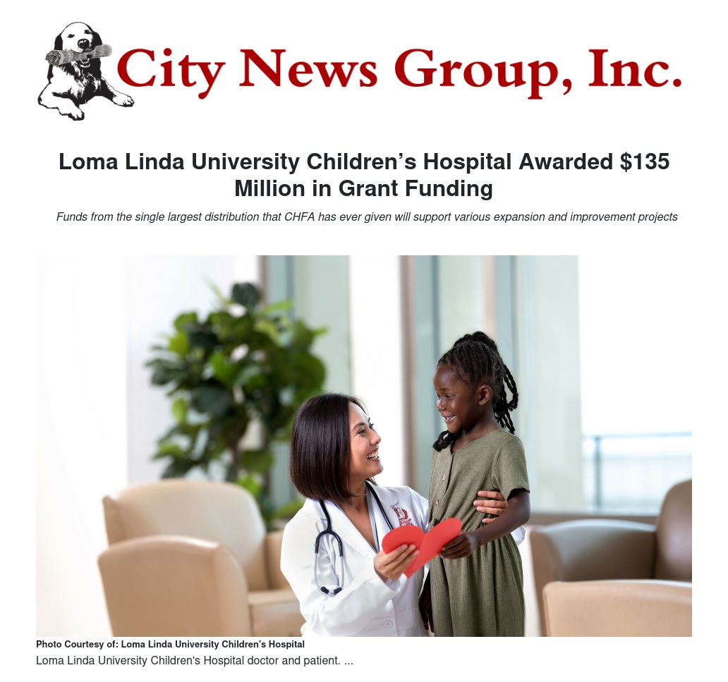 Loma Linda University Children’s Hospital Awarded $135 Million in Grant Funding by Briana Pastorino - City News Group, Inc.