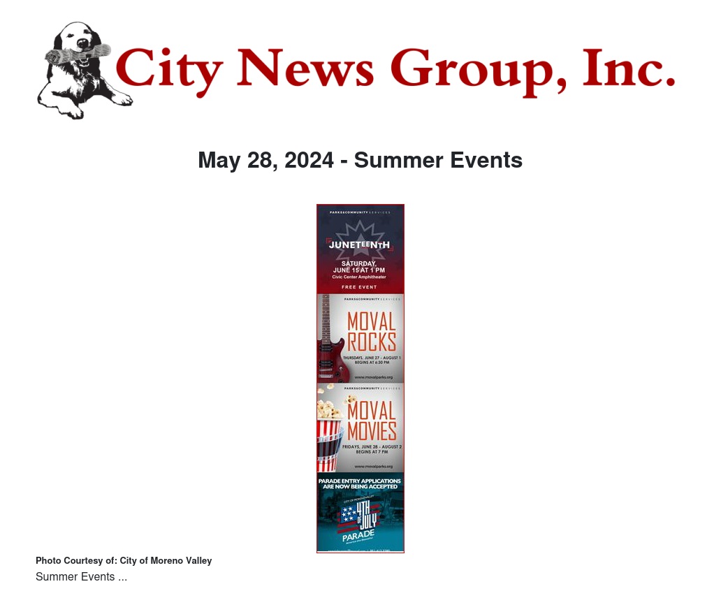 Summer is only a couple of weeks away. That is music to my ears because, as always, Moreno Valley is full of fun activities and events for residents and their friends and family. We’ve got music, movies, parades, and celebrations throughout the season.