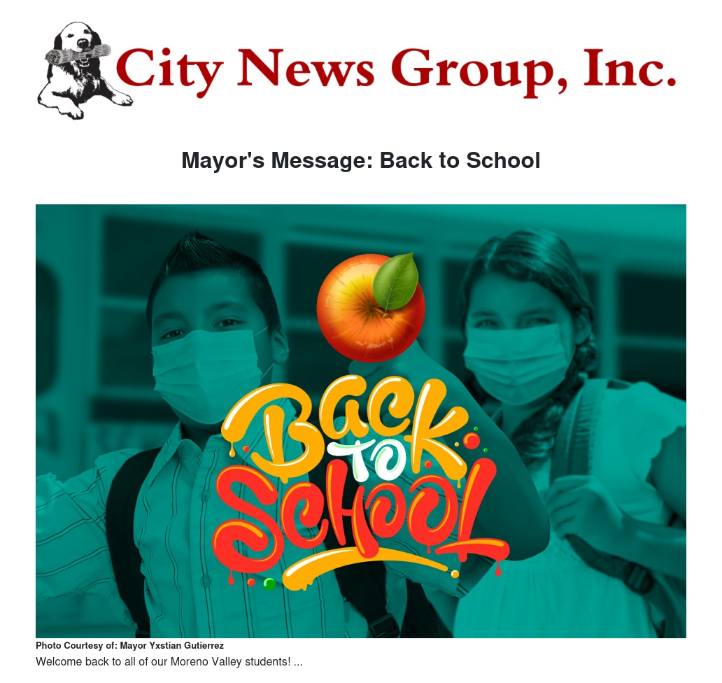 Mayor's Message: Back to School by Mayor Yxstian Gutierrez - City News Group, Inc.