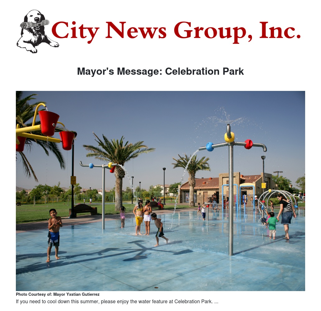 Mayor's Message: Celebration Park by Mayor Yxstian Gutierrez - City News Group, Inc.