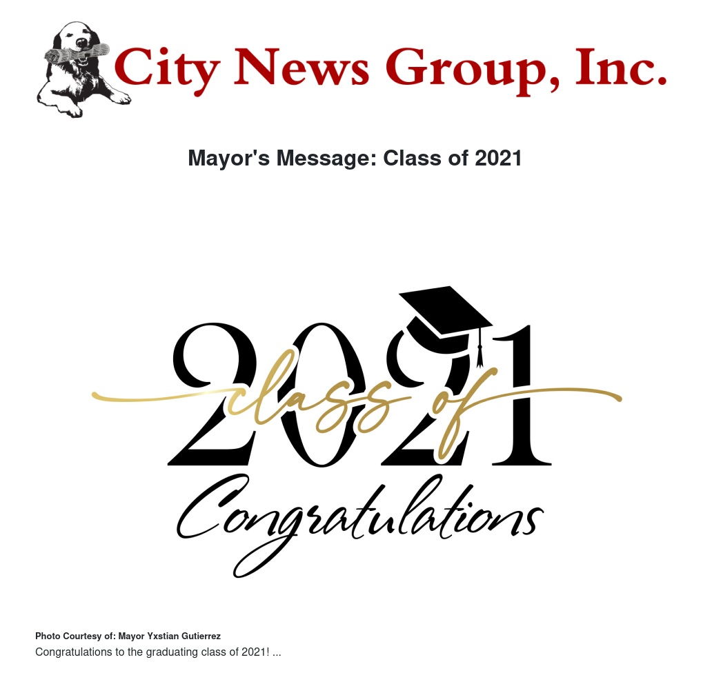 Mayor's Message: Class of 2021 by Mayor Yxstian Gutierrez - City News Group, Inc.