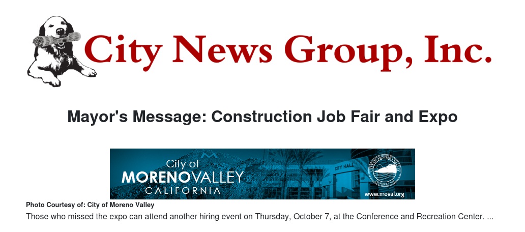 Mayor's Message: Construction Job Fair and Expo by Mayor Yxstian Gutierrez - City News Group, Inc.