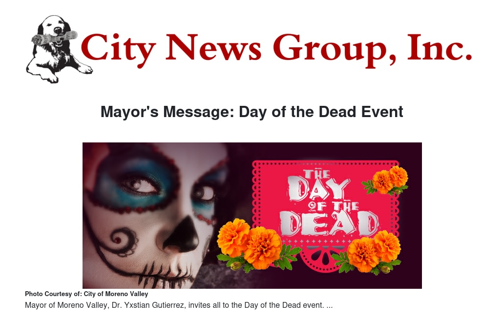 It’s no secret that Moreno Valley celebrates the Day of the Dead like no other. Our Civic Center Amphitheater will be transformed for an evening of live music, ballet folklórico dancers, games, food vendors, face painting, and dozens of beautiful altars honoring loved ones from Moreno Valley and beyond.