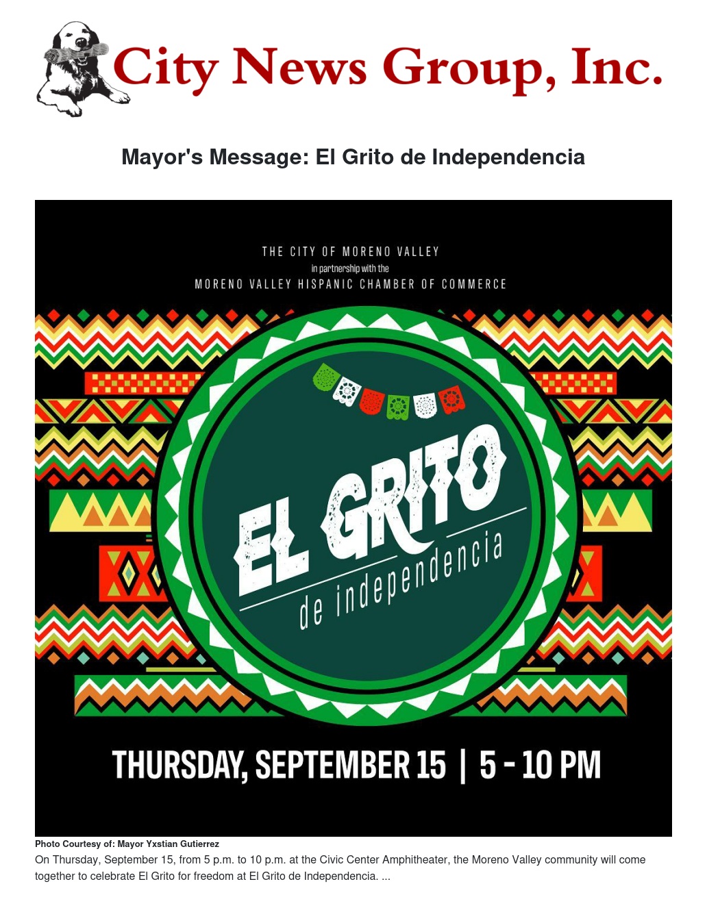 On Thursday, September 15, from 5 p.m. to 10 p.m. at the Civic Center Amphitheater, the Moreno Valley community will come together to celebrate his cry for freedom at El Grito de Independencia.