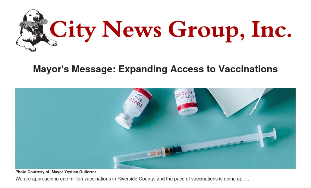 Mayor's Message: Expanding Access to Vaccinations by Mayor Yxstian Gutierrez - City News Group, Inc.