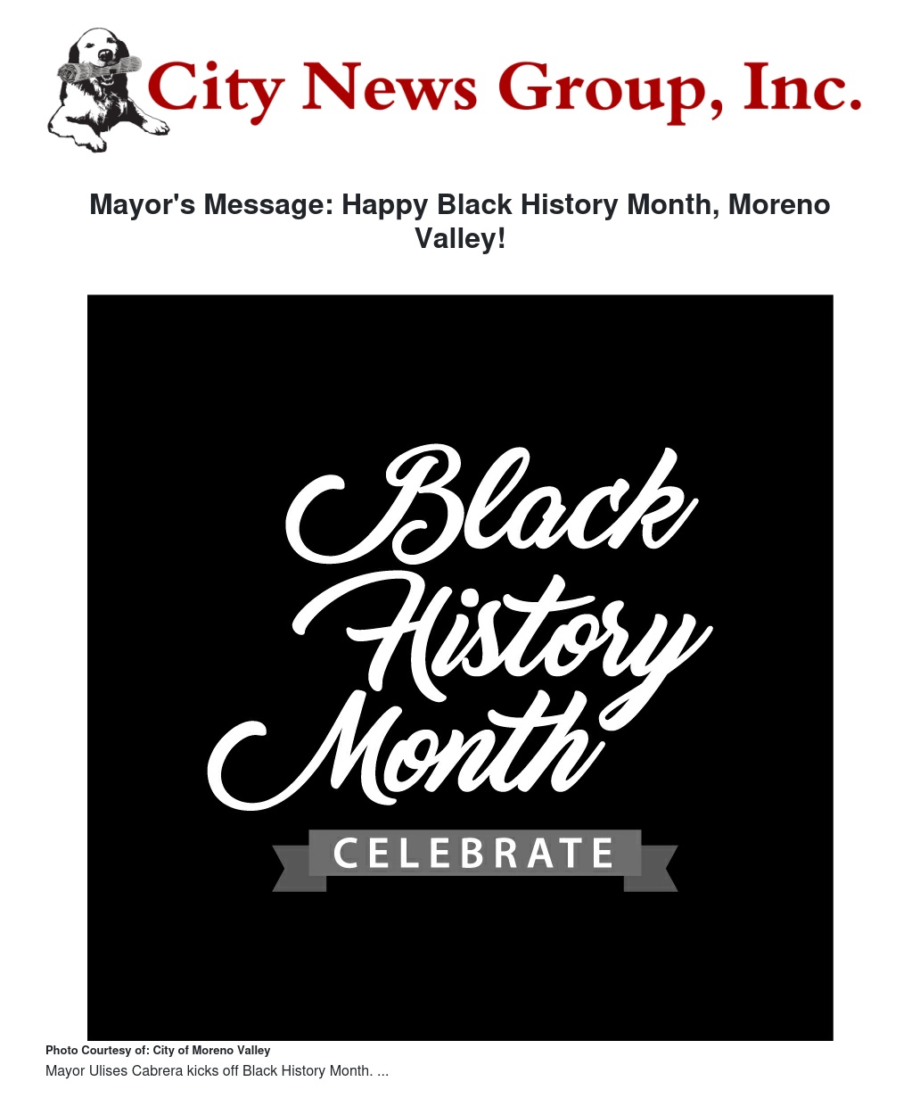 From all of us at the City of Moreno Valley, Happy Black History Month!