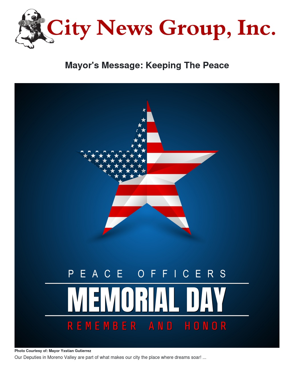 Mayor's Message: Keeping The Peace by Mayor Yxstian Gutierrez - City News Group, Inc.