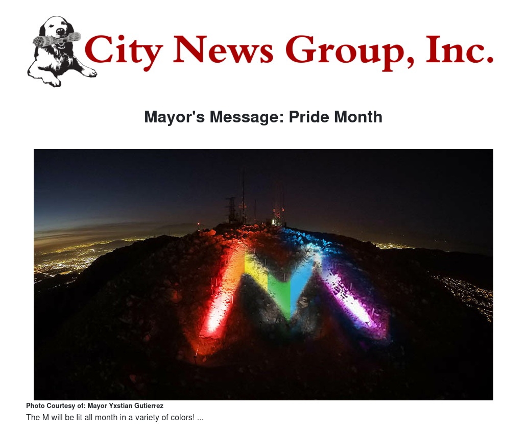 Mayor's Message: Pride Month by Mayor Yxstian Gutierrez - City News Group, Inc.