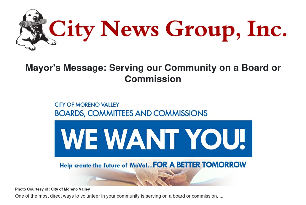 Mayor's Message: Serving our Community on a Board or Commission by Mayor Yxstian Gutierrez - City News Group, Inc.
