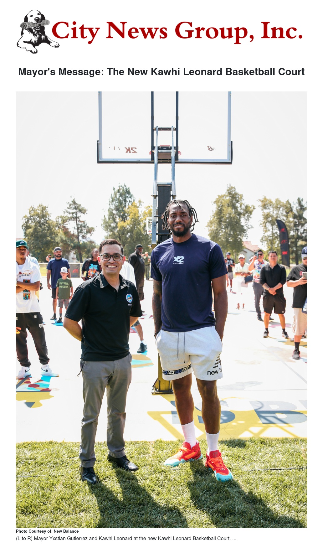 In addition to being among the best players in NBA history, Kawhi Leonard grew up in Moreno Valley. This past Saturday, he gave back to his community by dedicating a brand-new, state-of-the-art basketball court right here in town—the Kawhi Leonard Basketball Court at Weston Park.