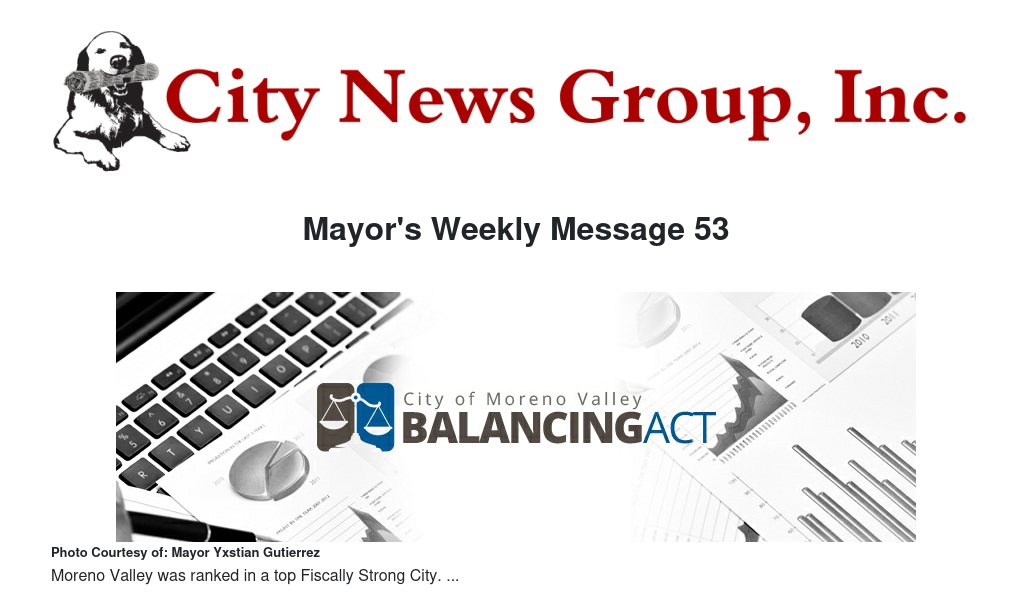For the last six years, the City of Moreno Valley has enjoyed a balanced budget. We were recently named a top ranked Fiscally Strong City in the Nation by the Fiscal Times.