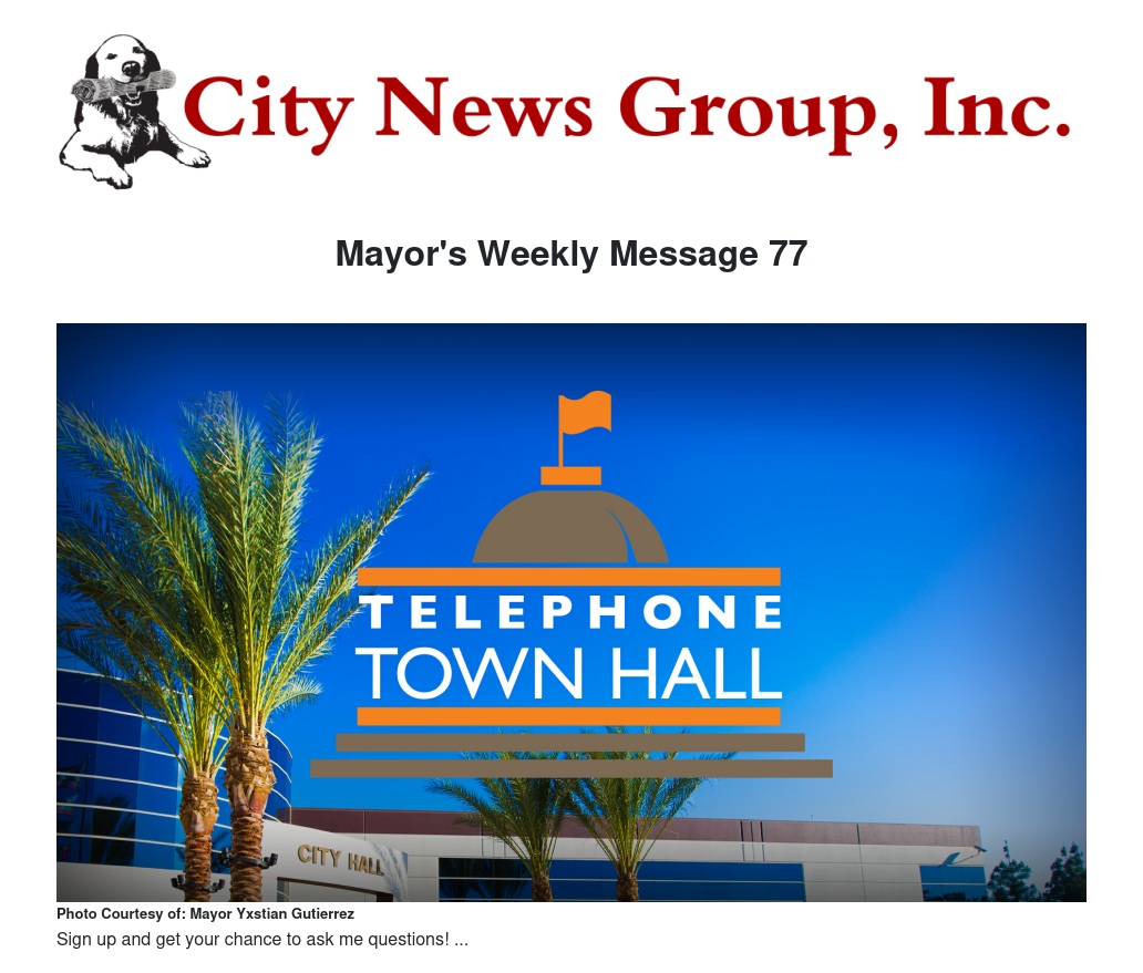 One of the most fun for me is hosting Moreno Valley’s Telephone Town Hall Meetings. We had one just last week. During the Telephone Town Hall Meeting, I call thousands of residents at once and let them ask me questions about our city services and their needs in a talk-radio format. Last week’s event allowed me to answer many questions in English and Spanish, ranging from what summertime activities the city has to offer, to traffic enforcement, to the safety of our community.