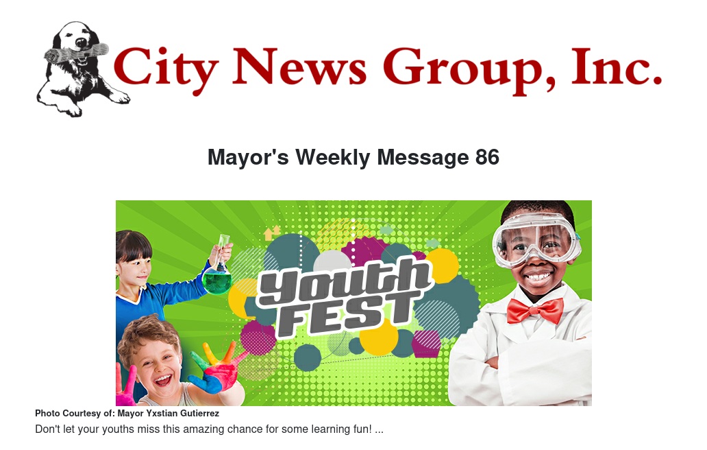 There’s a lot that goes into building and sustaining a healthy community, and fun, family-friendly events are an important part of it. So I hope to see you at YouthFest this Saturday, from 10 a.m. to 2 p.m. at TownGate Memorial Park, 13051 Elsworth St. It’s a fantastic way to spend quality time with the whole family!