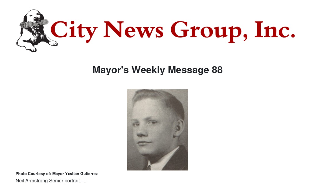 Armstrong’s childhood potential was no greater than anyone else’s. All children are blessed with nearly limitless potential that only needs to be encouraged and directed by the adults in their lives. As an educator, I am so fortunate to have experienced those exhilarating moments when a child finally grasps a concept or begins to master a new skill. That’s why I am such a committed supporter of our City’s many youth services. Because we each need to do whatever is in our power to positively influence a child’s life.