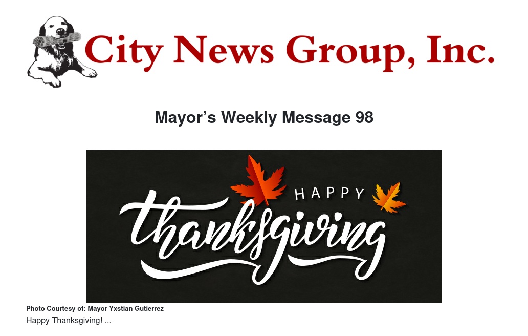 This holiday, I am especially thankful for all that we have accomplished together in the past year as a city and a community. And I look to the future with a strong sense of optimism and excitement.