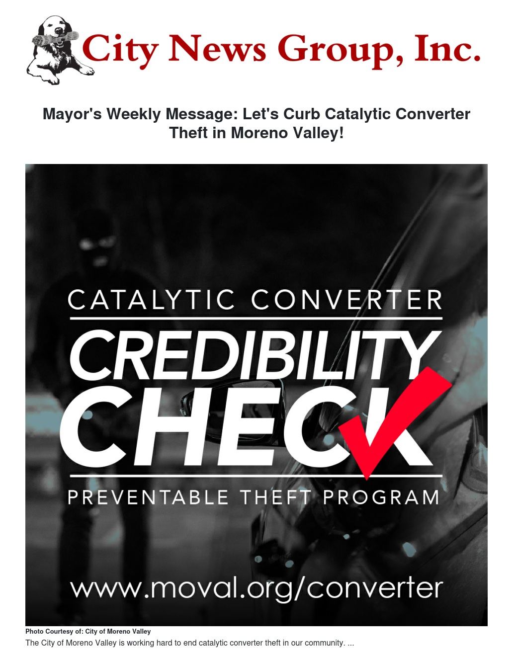One of my top priorities as mayor is to keep our community safe. We are making that happen by curbing catalytic converter theft in Moreno Valley.