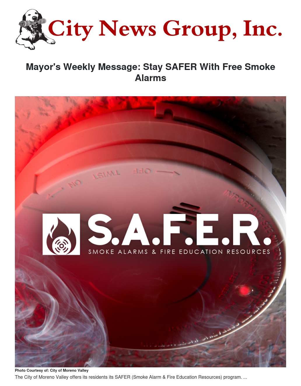 Mayor's Weekly Message: Stay SAFER With Free Smoke Alarms by Ulises Cabrera - City News Group, Inc.