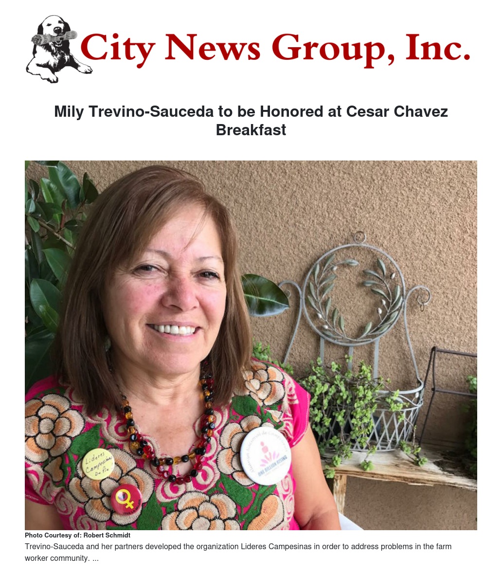 Trevino-Sauceda arrived in the Coachella Valley with her family in 1974 to work in the fields. By taking chances and following her intellectual curiosity she eventually became one of the most important and effective organizers in the United States. She and her partners developed the organization Lideres Campesinas in order to address problems in the farm worker community.