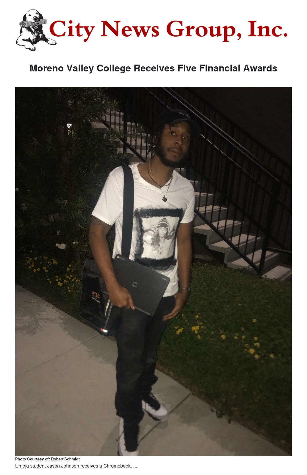 Finally, Umoja, which is dedicated to enhancing African American students' cultural and educational experiences, received a $16,000 grant and a $10,000 donation from Growing Inland Achievement's COVID-19 Emergency Relief Fund. The funding will support services for participants in the Umoja program. Funds will increase counseling services for the winter intersession and spring semester and support virtual activities.