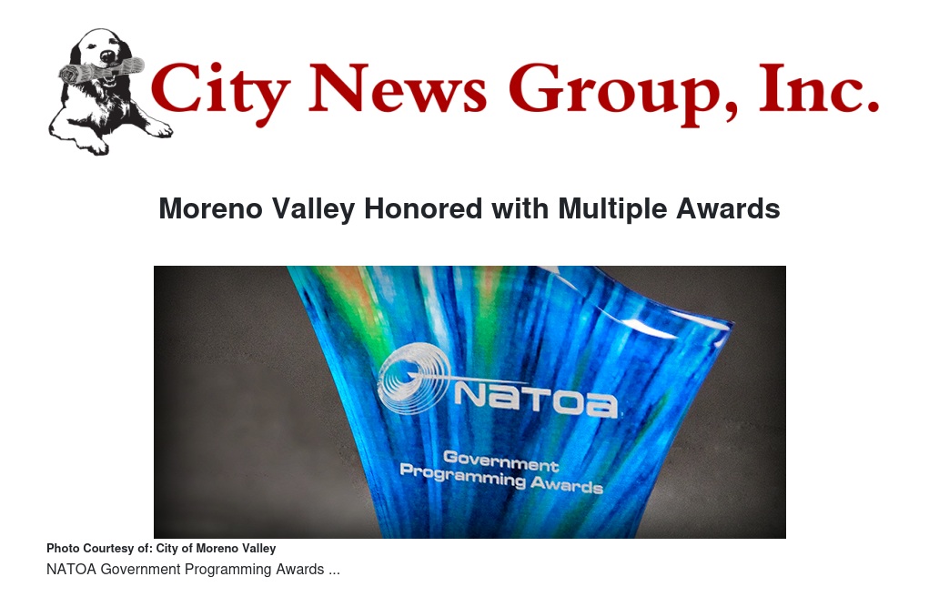 On August 21, 2025, NATOA honored Moreno Valley with top national awards in the following categories: