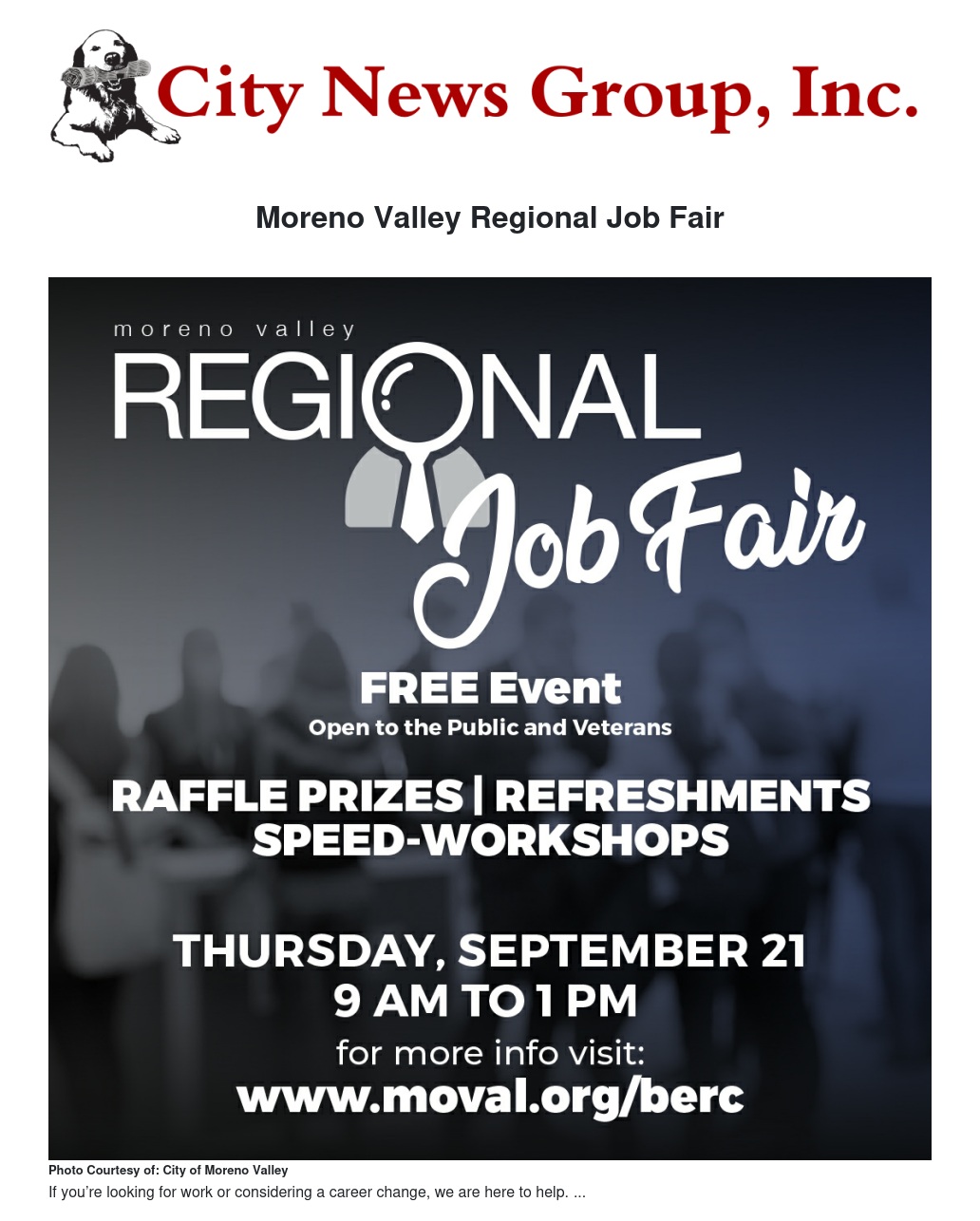 If you’re looking for work or considering a career change, the City of Moreno Valley is here to help.