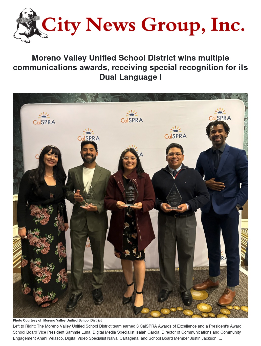 Moreno Valley Unified School District wins multiple communications awards, receiving special recognition for its Dual Language I by Anahi Velasco - City News Group, Inc.