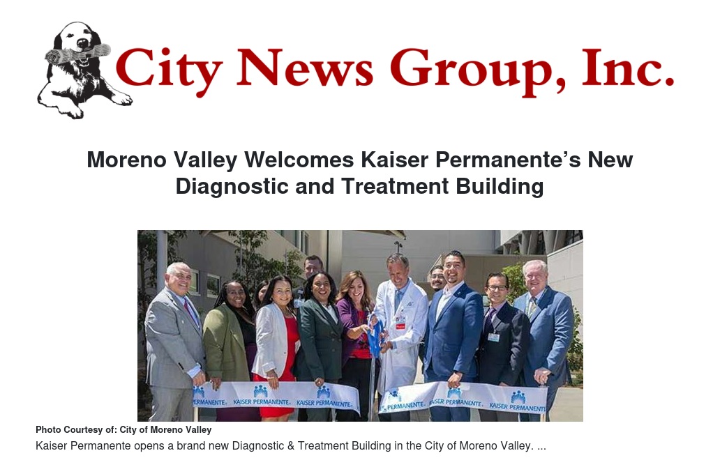 Moreno Valley Welcomes Kaiser Permanente’s New Diagnostic and Treatment Building by Vivian Johnson - City News Group, Inc.