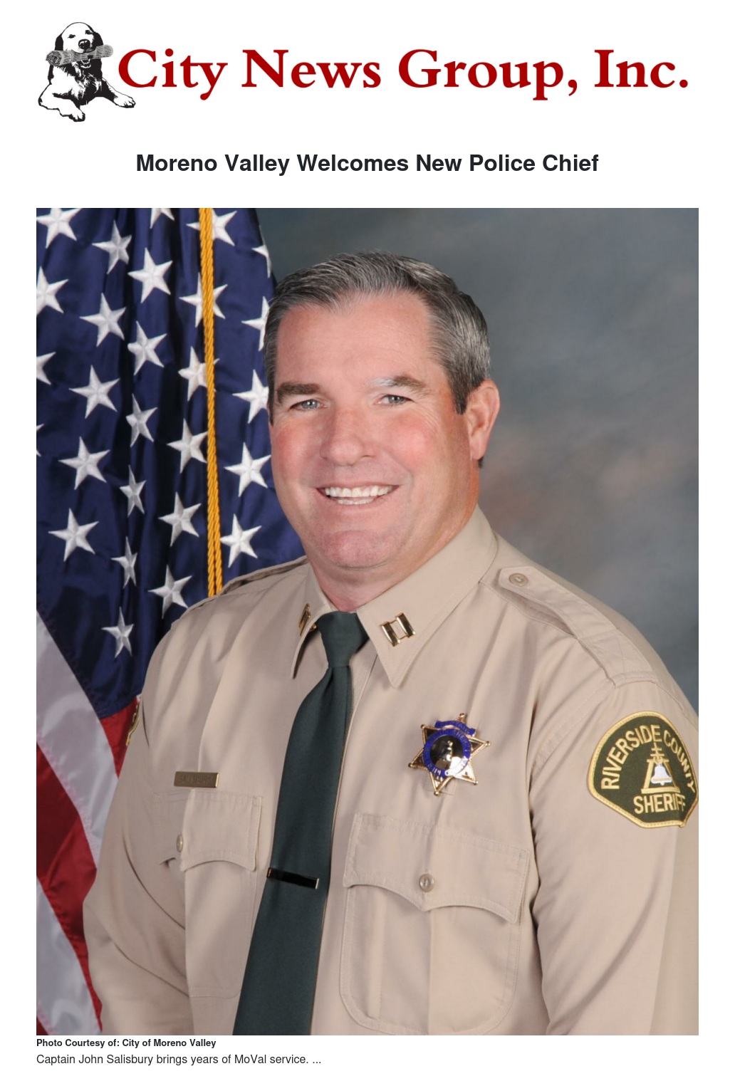 For newly appointed Moreno Valley Police Chief John Salisbury, the assignment is something of a homecoming. Salisbury served at Moreno Valley for seven years early in his 24-year career with the Riverside County Sheriff's Department.