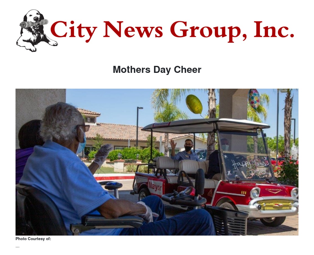 Because of the stay-at-home order, residents have had to do without visitors, so officers and firefighters and even Mayor Yxstian Gutierrez and Mayor Pro Tem Victoria Baca decided to let them know from a safe distance that the community wishes all the residents -- and especially the mothers -- the very best on this Mothers Day weekend.