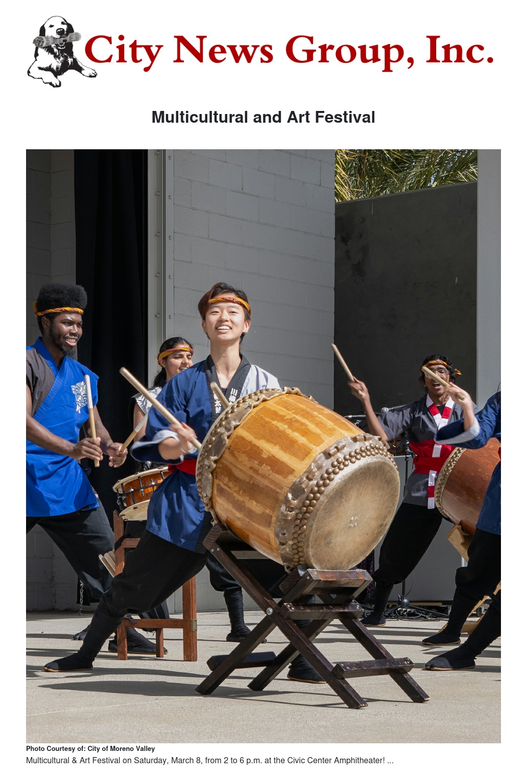 One of the things I love most about the City of Moreno Valley is our diversity. We come from different cultures, backgrounds, traditions, and experiences—but when we come together as a community, we create something truly special. That’s why I’m thrilled to invite you to the 2025 Multicultural & Art Festival on Saturday, March 8, from 2 to 6 p.m. at the Civic Center Amphitheater!