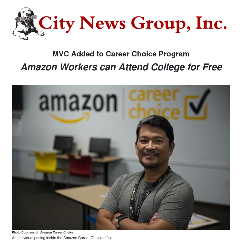 Under the program, hourly employees can attend for free. Hourly employees, who have been with Amazon for at least 90 days, can apply to any institution through the Career Choice website. Amazon will cover 100 percent of tuition, books and fees – with no lifetime limit. Employees are approved to take courses in foundational skills, such as English courses, career pathways to advance within Amazon, and credit programs to earn a degree. This month, Amazon made the announcement on the expansion of the program by unveiling additional educational partners, such as MVC.