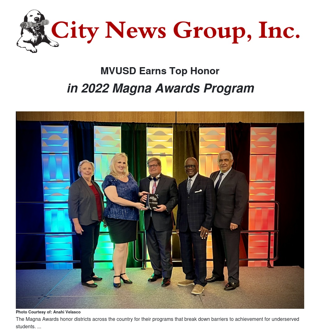 MVUSD Earns Top Honor by Luke Page - City News Group, Inc.