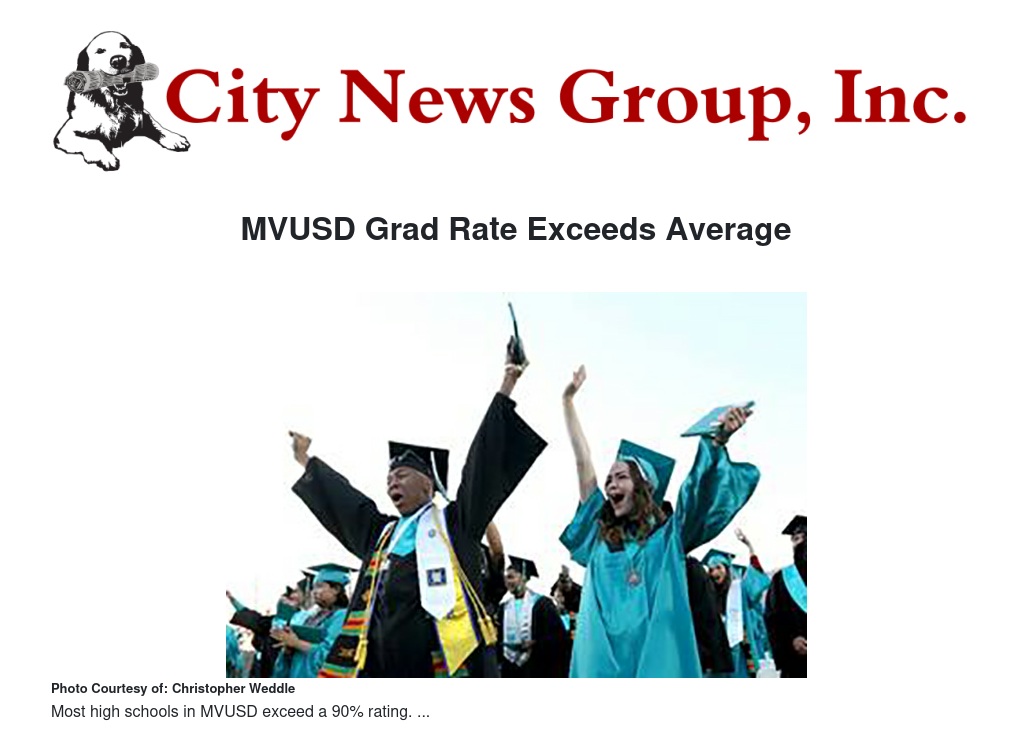 Since 2010, MVUSD has increased the graduation rate by 23.6 percent and all four comprehensive high schools now boast rates of at least 92 percent.