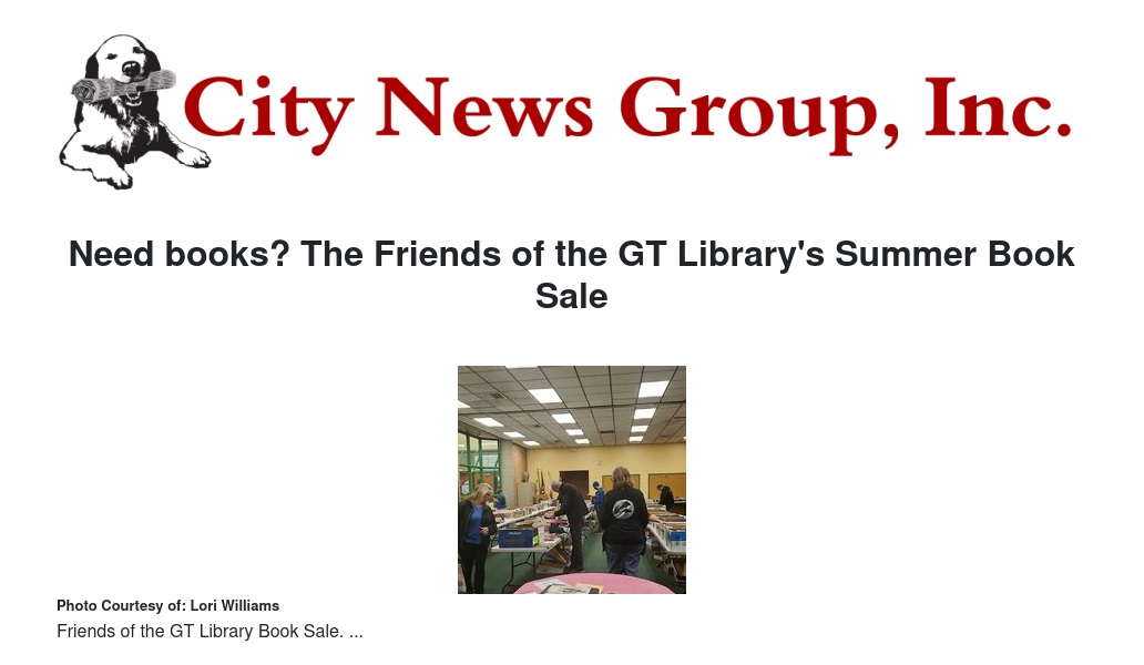 Need books? The Friends of the GT Library's Summer Book Sale by Lori Williams - City News Group, Inc.