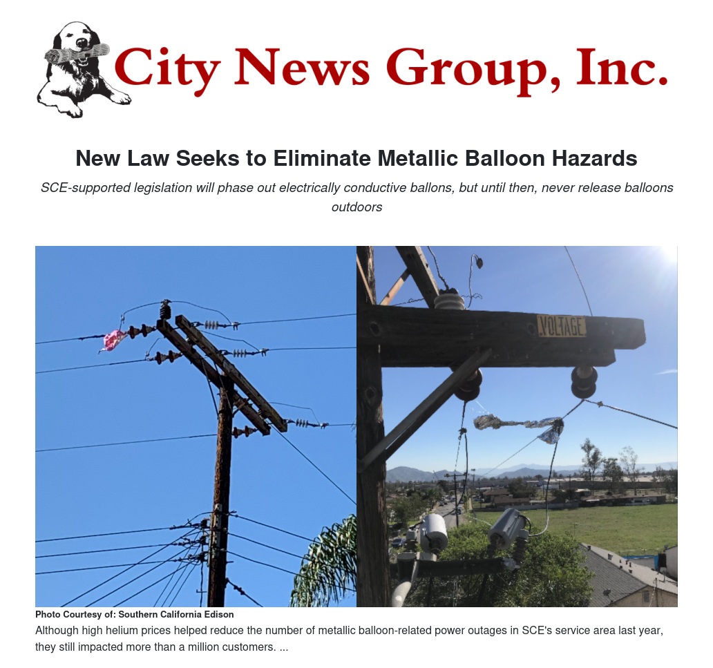 New Law Seeks to Eliminate Metallic Balloon Hazards by Paul Netter - City News Group, Inc.
