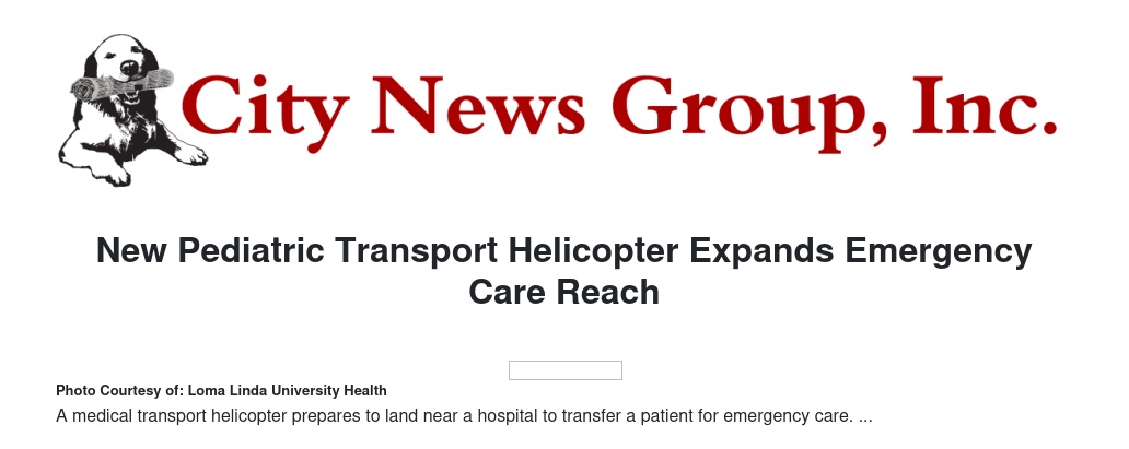 New Pediatric Transport Helicopter Expands Emergency Care Reach by William Cortez - City News Group, Inc.
