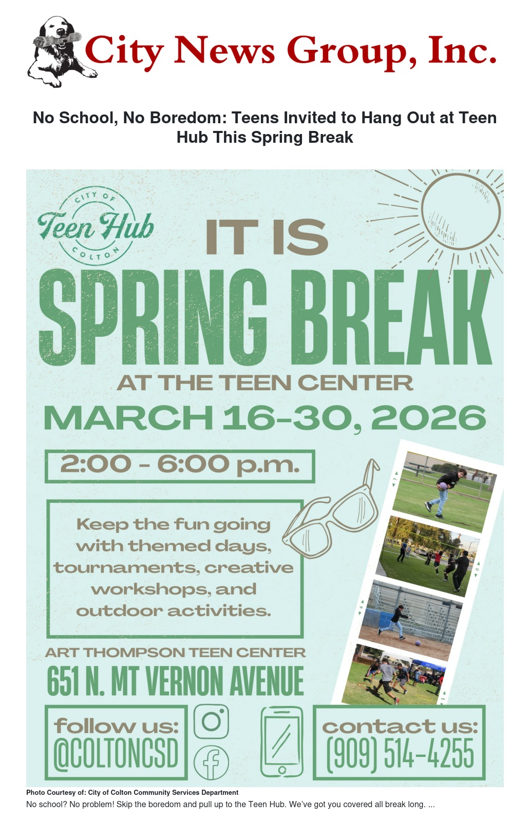 No School, No Boredom: Teens Invited to Hang Out at Teen Hub This Spring Break by Eric Montgomery - City News Group, Inc.