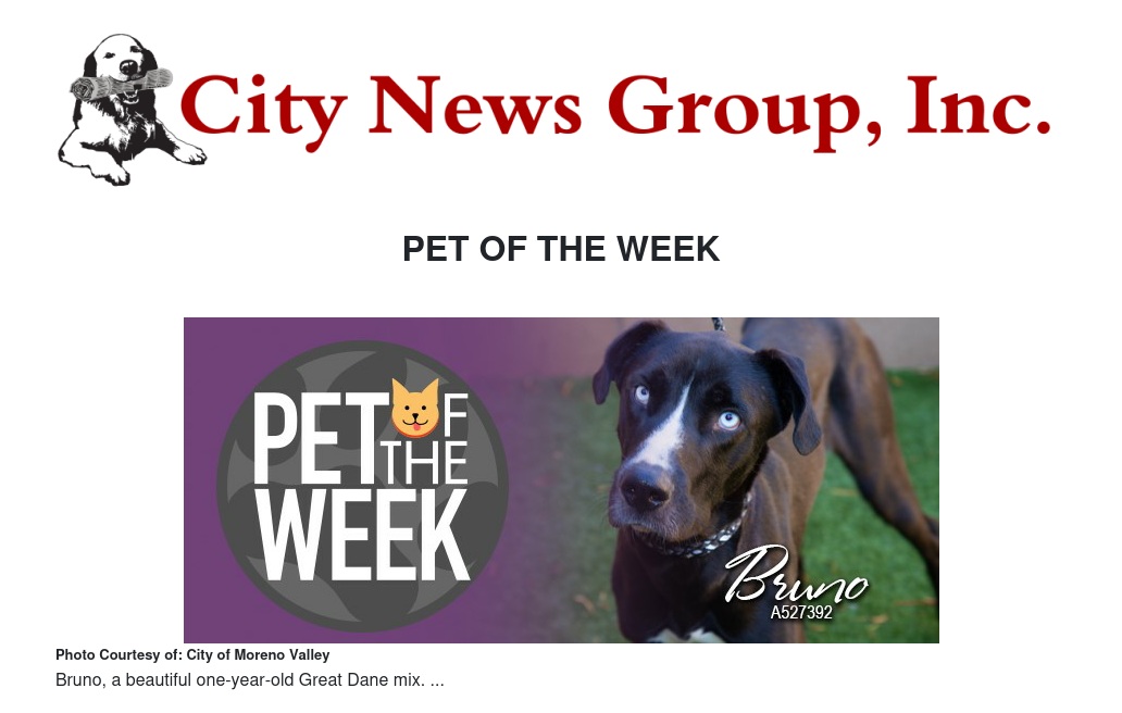 PET OF THE WEEK by City of Moreno Valley Animal Services - City News Group, Inc.
