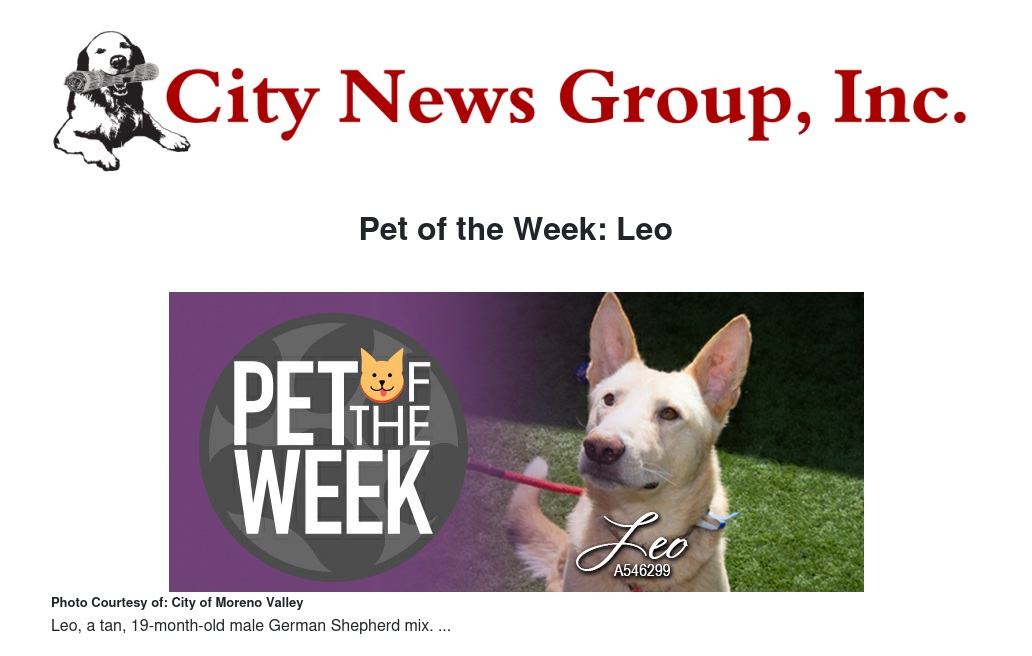 If you would like to make Leo or any pet from the Moreno Valley Animal Shelter part of your family, please call 951.413.3790 or visit moval.org/pets.