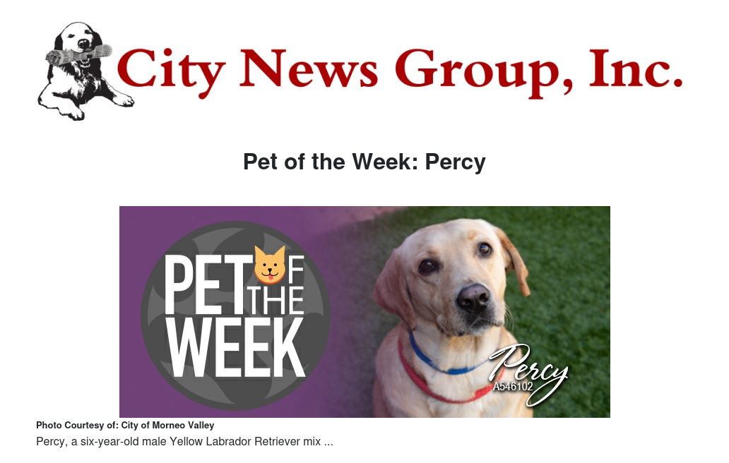 If you would like to make Percy, or any pet from the Moreno Valley Animal Shelter, part of your family, please call 951.413.3790 or visit moval.org/pets.
