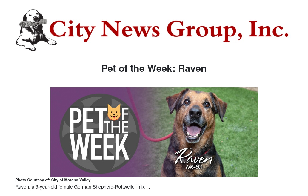Pet of the Week: Raven by City of Moreno Valley - City News Group, Inc.