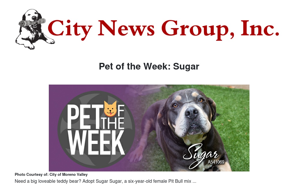 Pet of the Week: Sugar by Stella Pierce - City News Group, Inc.