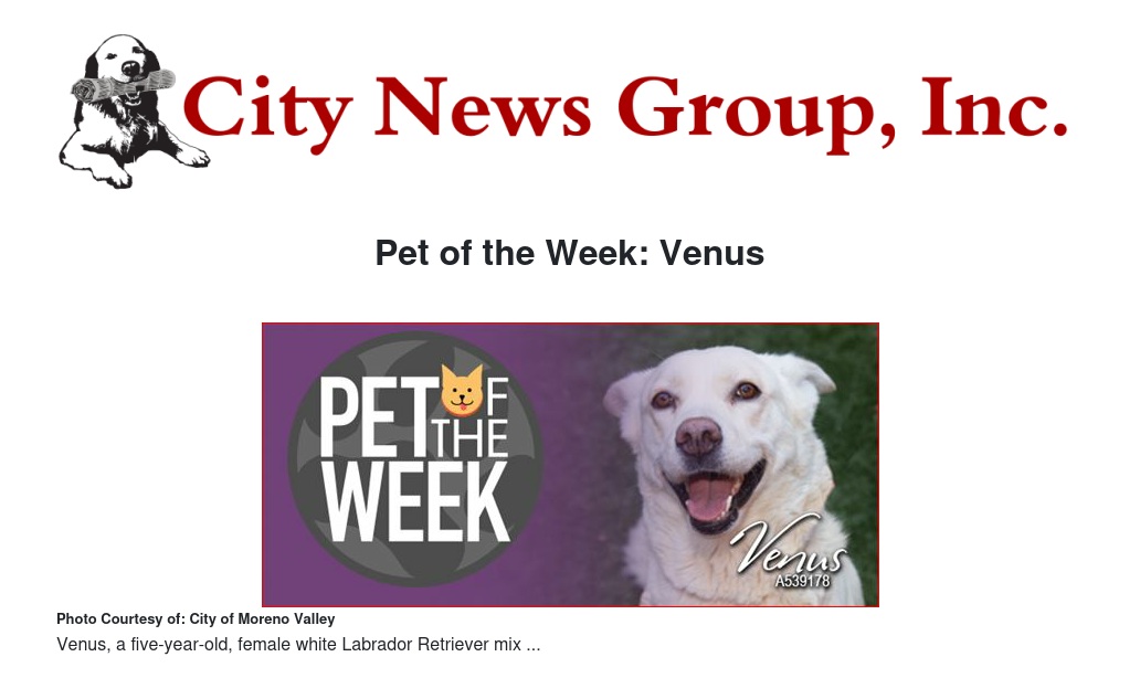 If you would like to make Venus or any pet from the Moreno Valley Animal Shelter part of your family, please contact the Moreno Valley Animal Shelter at 951.413.3790 or visit www.moval.org/pets